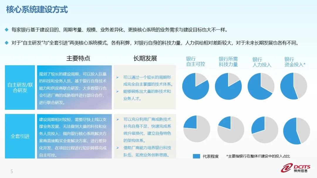 作为银行最重要的生产系统,核心系统一直是银行IT建设的重中之重,投入大、涉及部门多、建设周期长,其建设不仅是对全行科技能力的一次迭代,更是对全行科技能力的一次大考。目前国内核心建设主要采用“自主和联合”两种方式。
